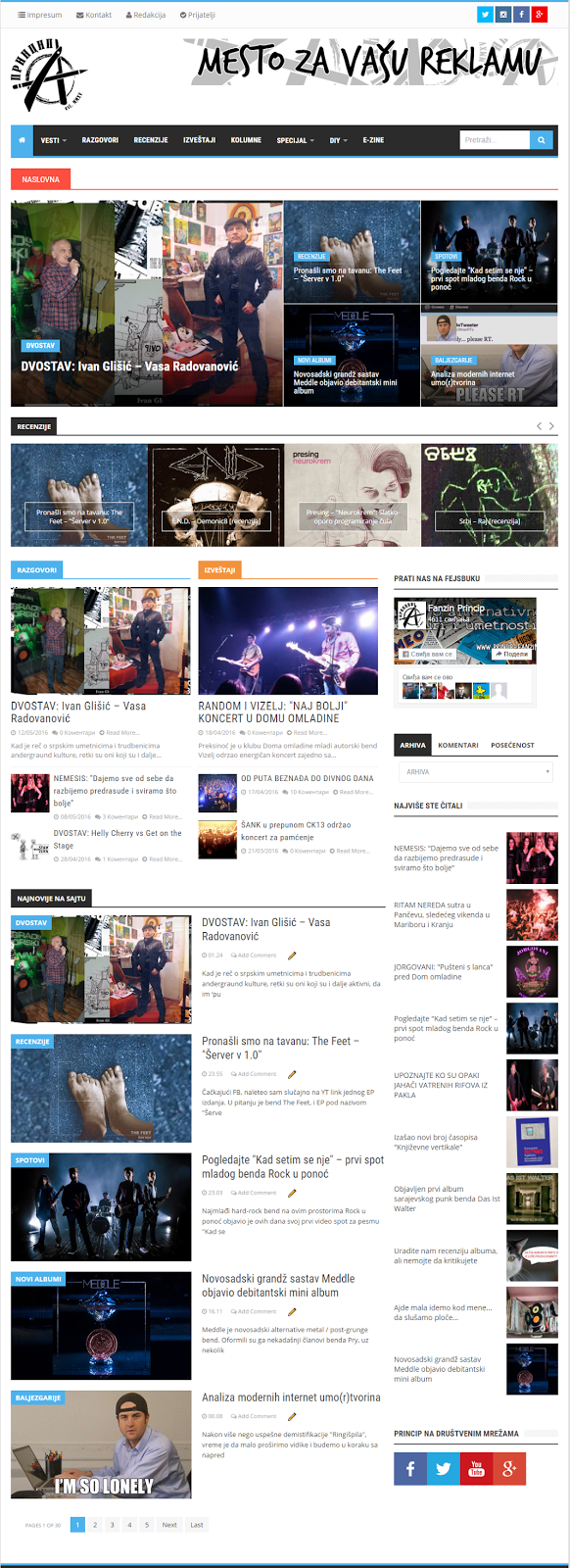 Drugi deo sajta su posebne "sekcije" gde smo izdvojili najnovije recenzije, intervjue i koncertne izveštaje, kao i najsveže objavljene tekstove. Sa desne strane su dodaci za društvene mreže, najnovije komentare, celokupnu arhivu po mesecima, ukupnu posećenost, i dodatak za deset najčitanijih tekstova u poslednjih sedam dana.